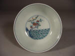 circle, the decoration all in bright enamels within underglaze blue double line
