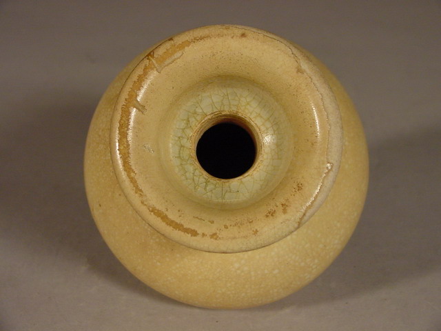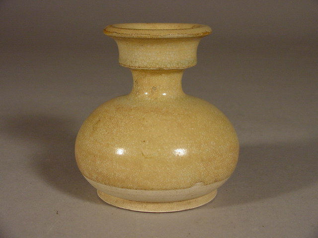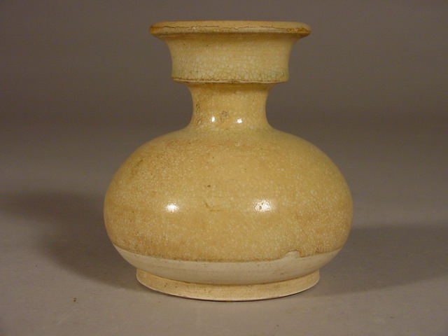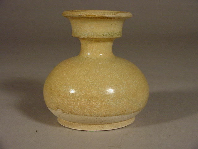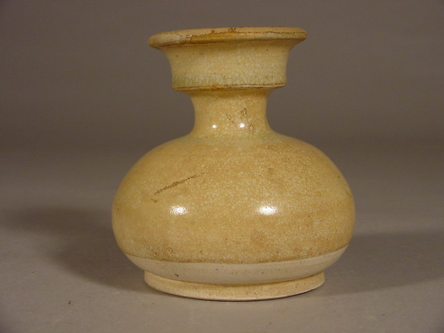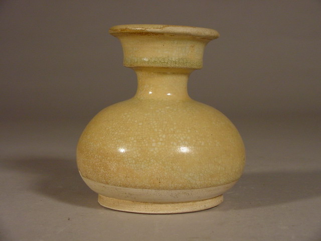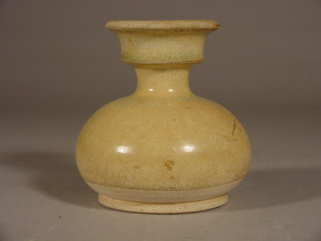 globular form with a cupped everted mouth above a short waisted neck supported on