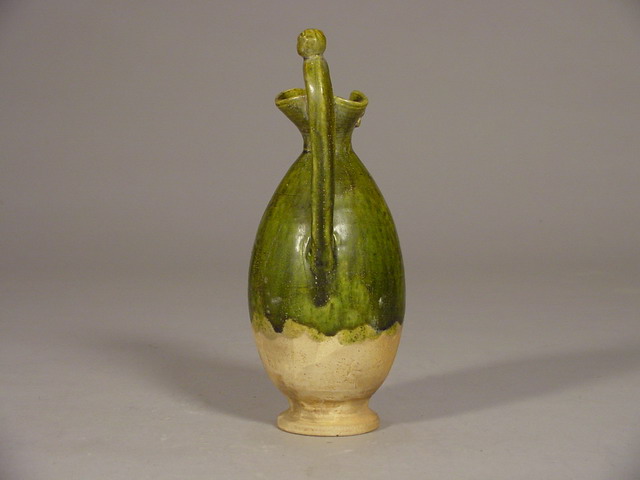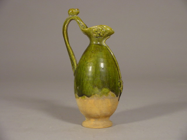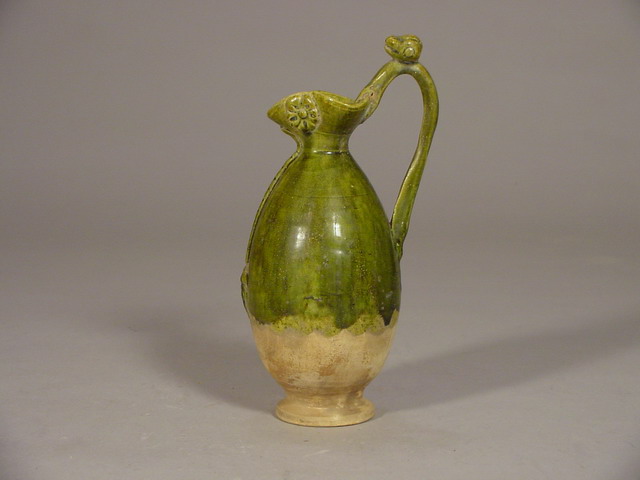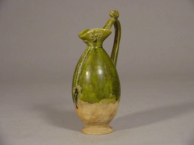 applied to either side of the pinched spout, the curved handle which is applied on top with a