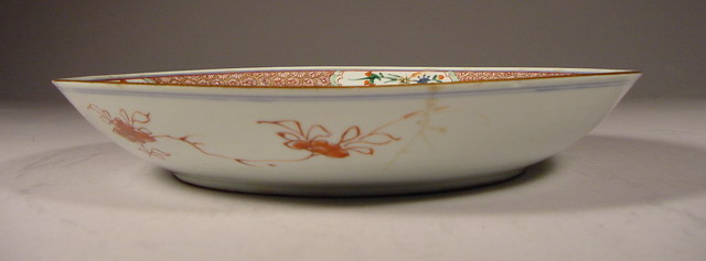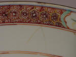 The white cavetto curves up to a brocade diaper ground border interrupted with