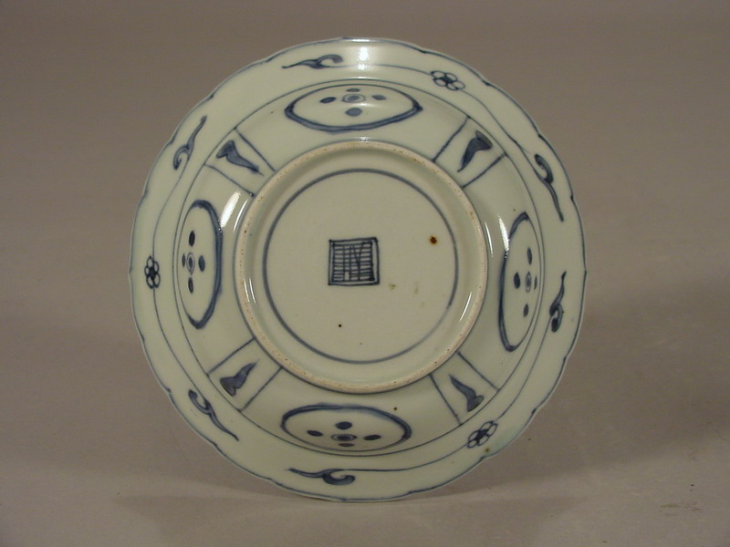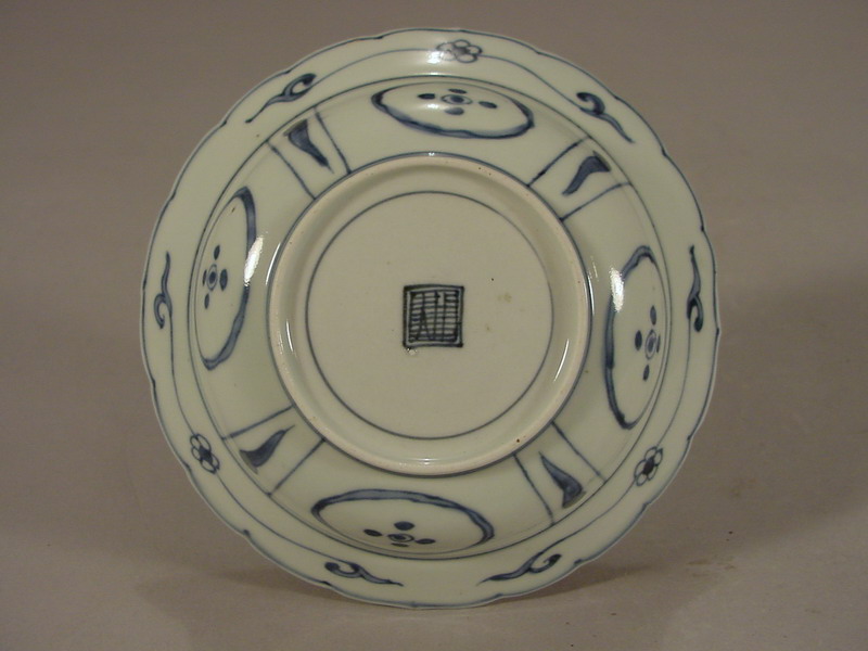 circles and lines and three floral sprigs. The base bears an indecipherable shop