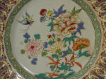 butterfly hovering above. In the shallow cavetto a green band of stylized