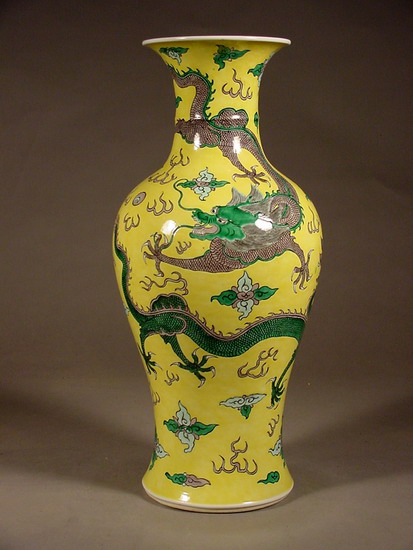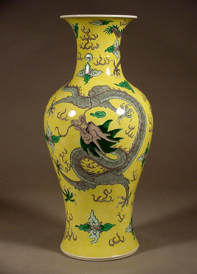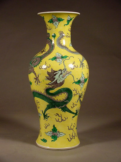 康熙 Kangxi Famille Jaune Three Dragon Baluster Vase