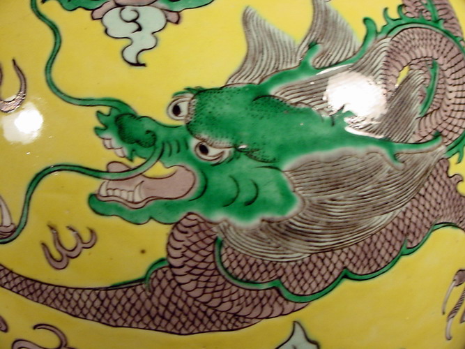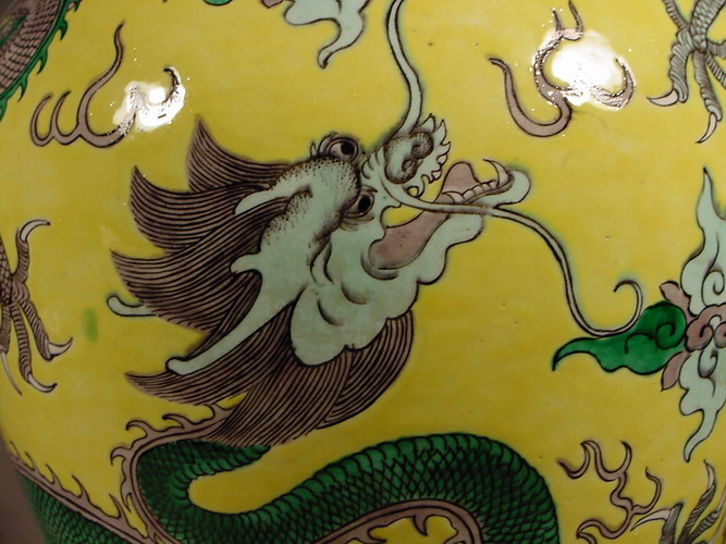 Enlargements of 康熙 Kangxi Famille Jaune Three Dragon Baluster Vase