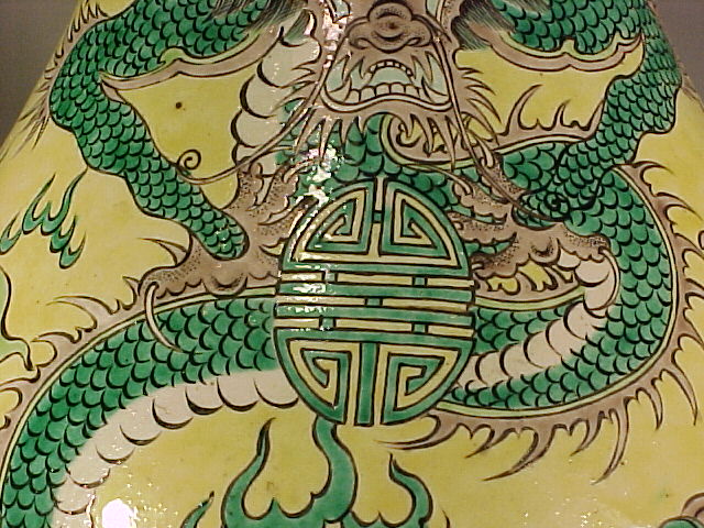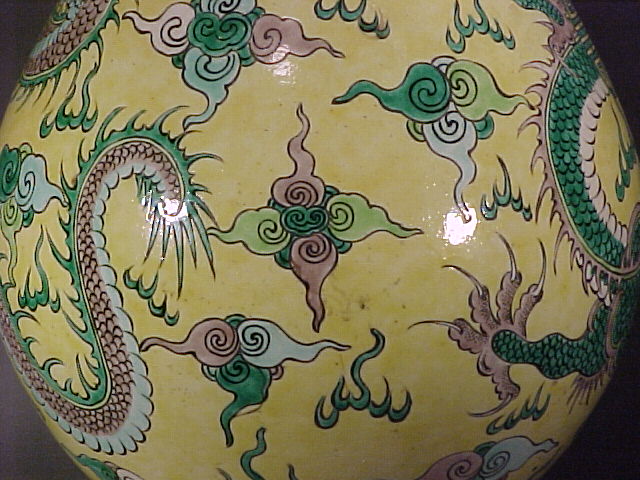 ***SOLD*** Enlargements of 康熙 Kangxi Style Famille Jaune Double Dragon Vase