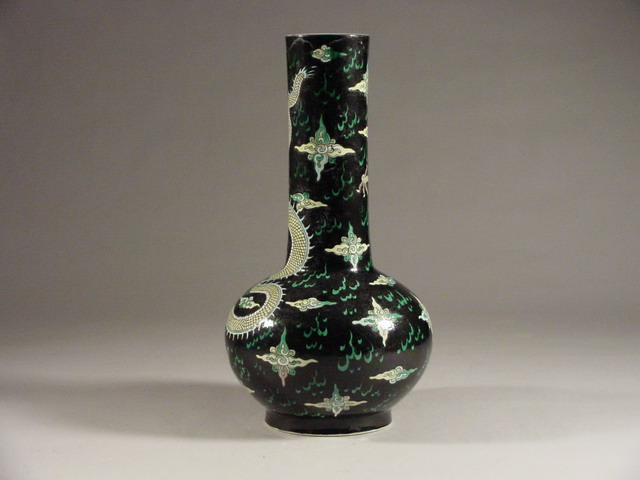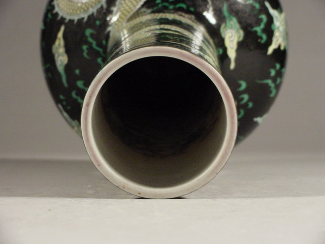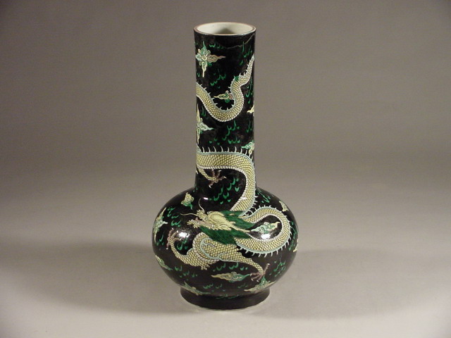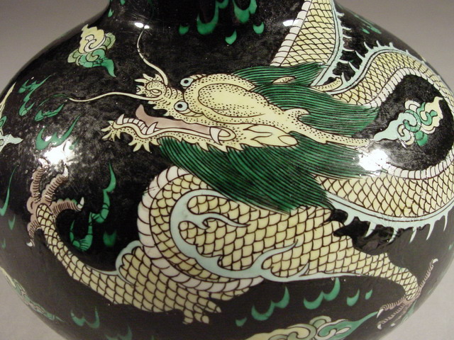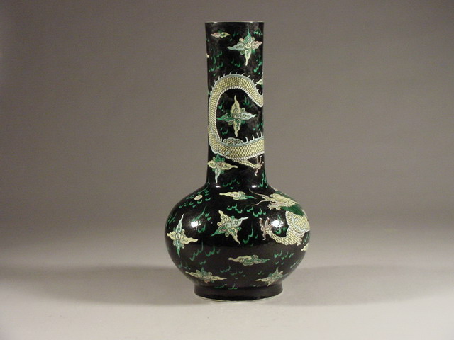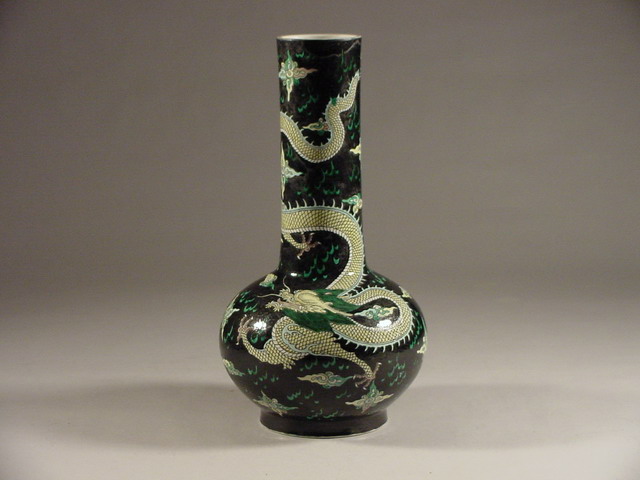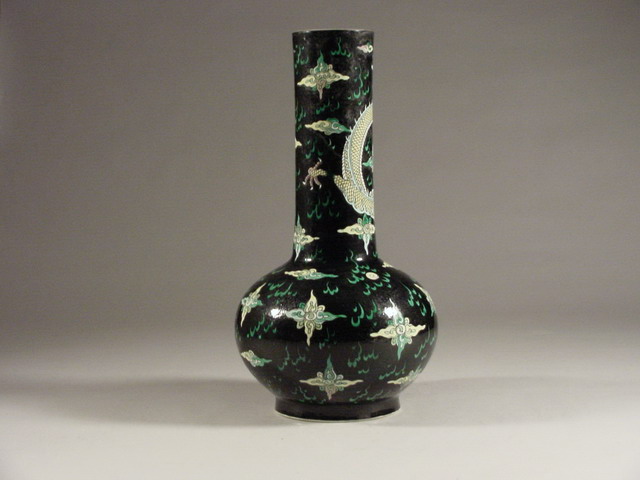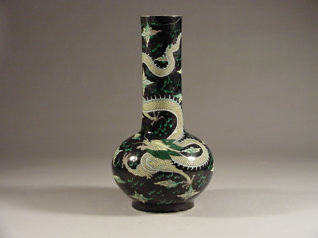 康熙 Kangxi Famille Noire Dragon Bottle Vase Bi Qi Zun