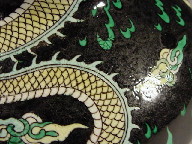 Additional Enlargements of 康熙 Kangxi Famille Noire Dragon Vase
