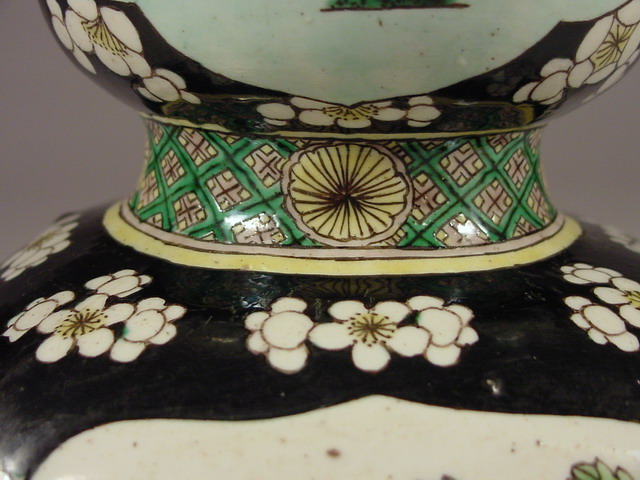 Enlargements of 康熙 Kangxi Style Famille Noire Double Gourd Cushion Vase