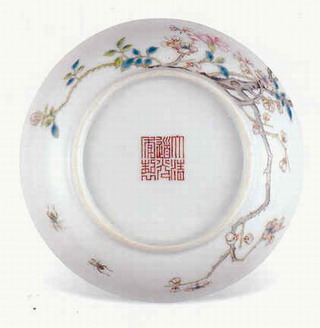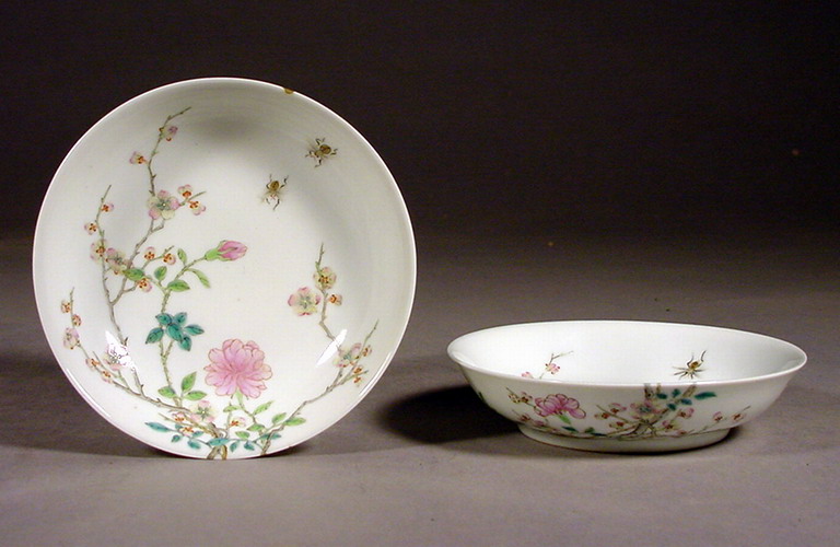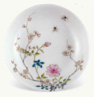 enamels (yangcai) in the Yongzheng style with prunus flowers and roses and two bees