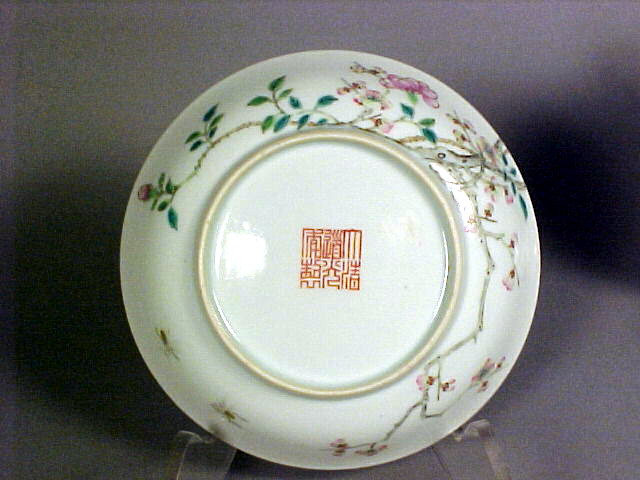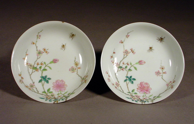 A fine pair of small Imperial saucer dishes painted in famille rose