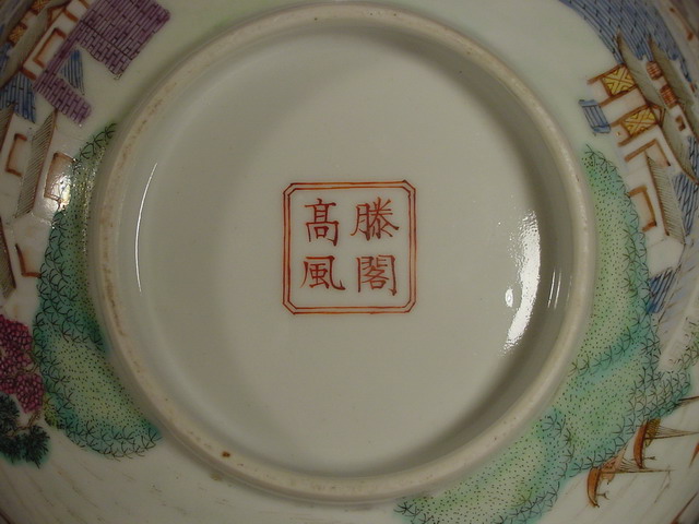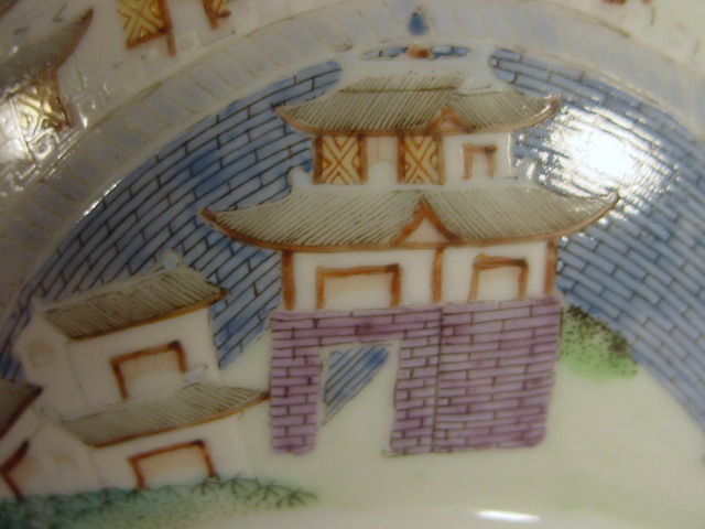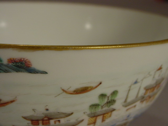 Enlargements of Imperial 道光 Daoguang Famille Rose Pavilion Bowl