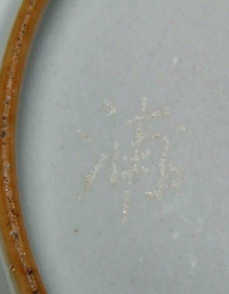 a blossoming peony and chrysanthemum sprays with a bat. The reverse is