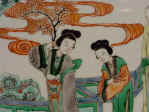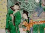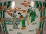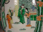 of ovoid shape, the steeply rounded sides rise to a rolled mouth rim. The body decorated with scenic panels of various scenes from the "Romance of the