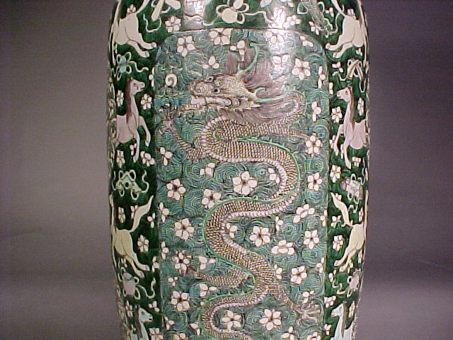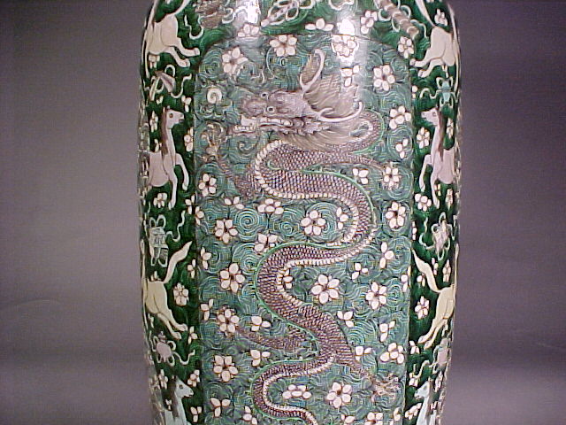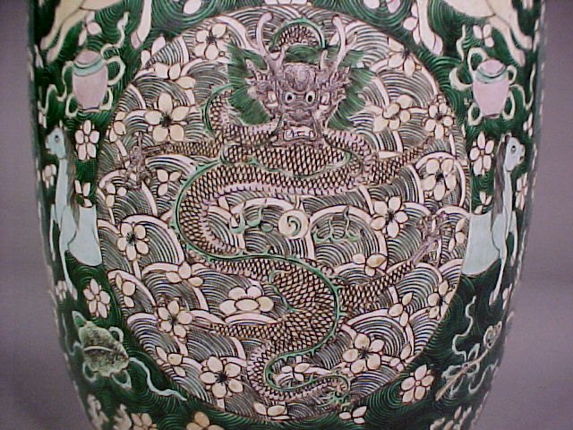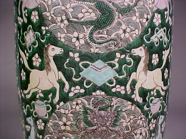 Enlargements of 康熙 Kangxi Famille Verte Rouleau Vase (Bangchuiping)