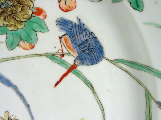 ***SOLD***Additional Enlargements of 康熙 Kangxi Famille Verte Birds & Flowers Dish
