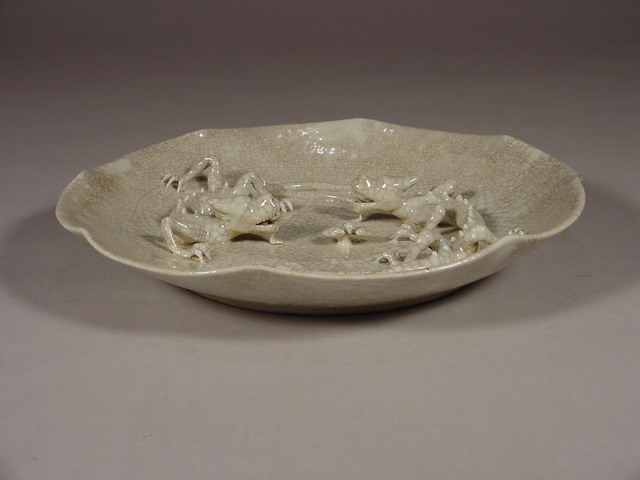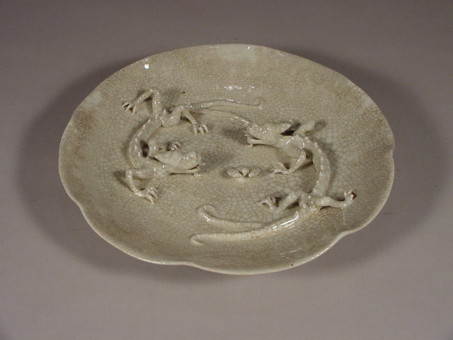 scalloped and foliated form. In the center of the tray is a bat encircled