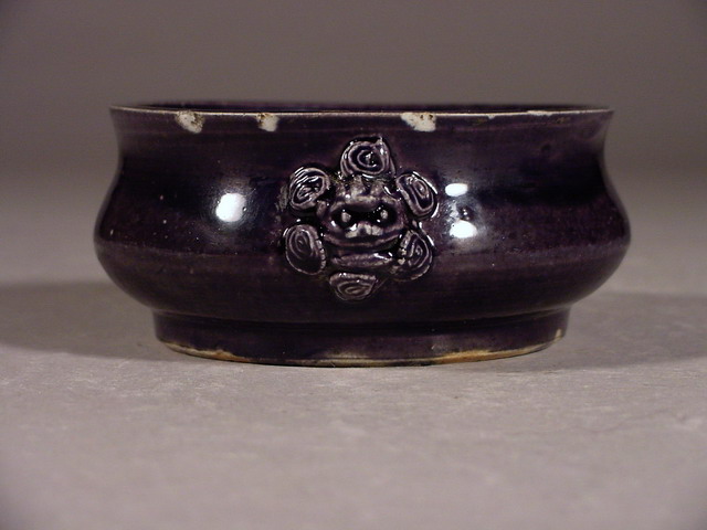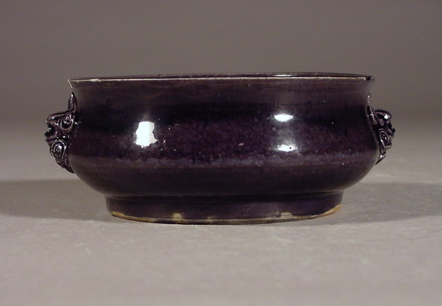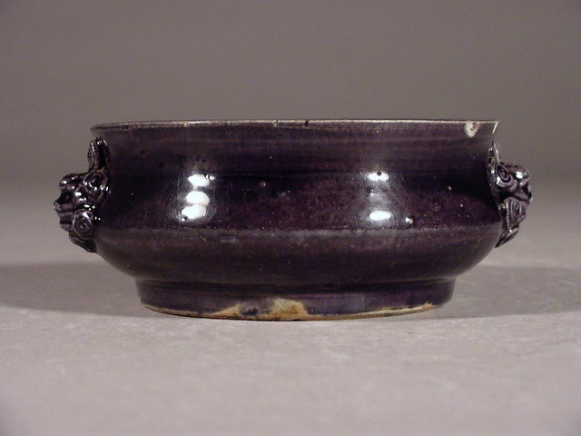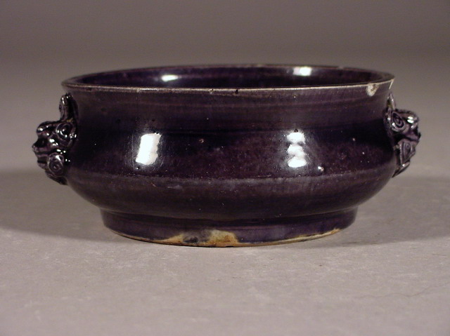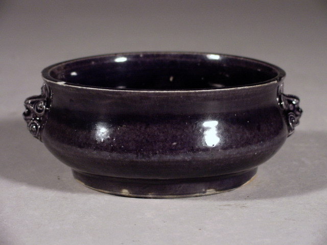 崇禎 Chongzhen Aubergine Lion Mask Handled Censer