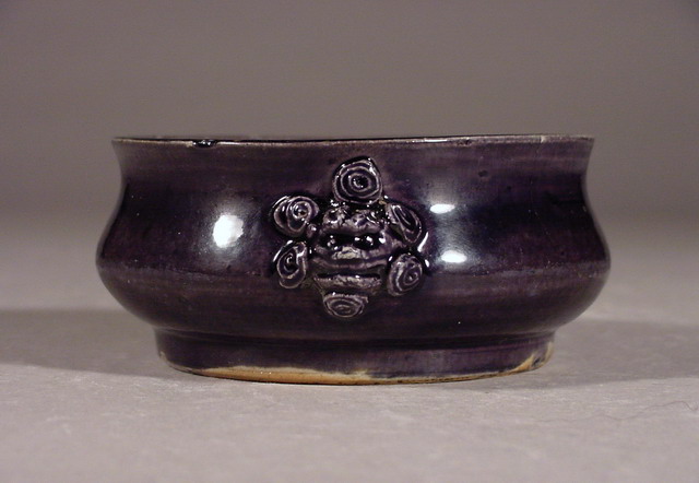 purple toned glaze. The bottom shows evidence of radial chatter marks