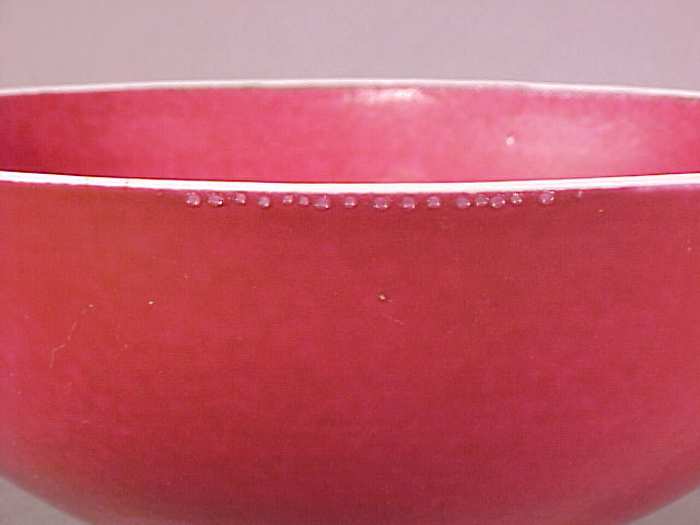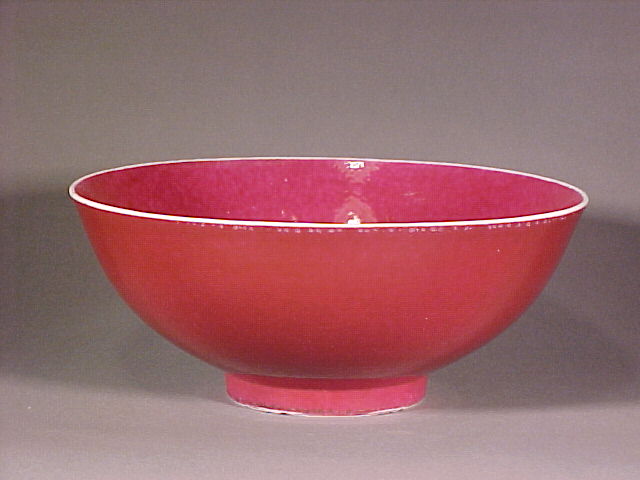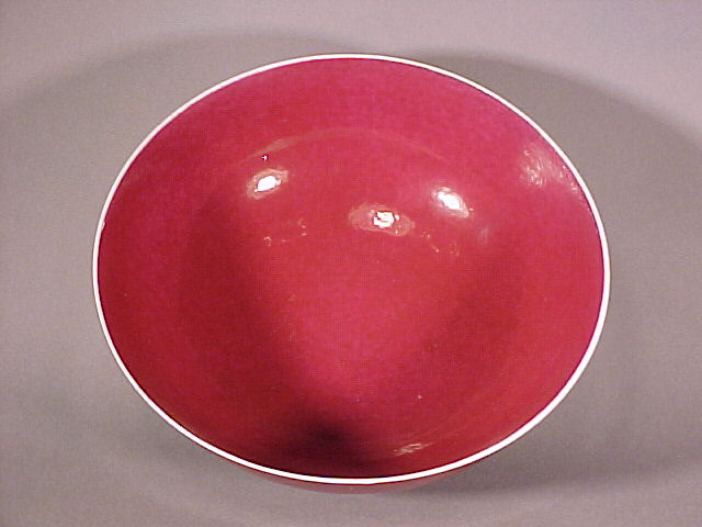 A hemispherical bowl covered entirely in a rich Rose du Barry
