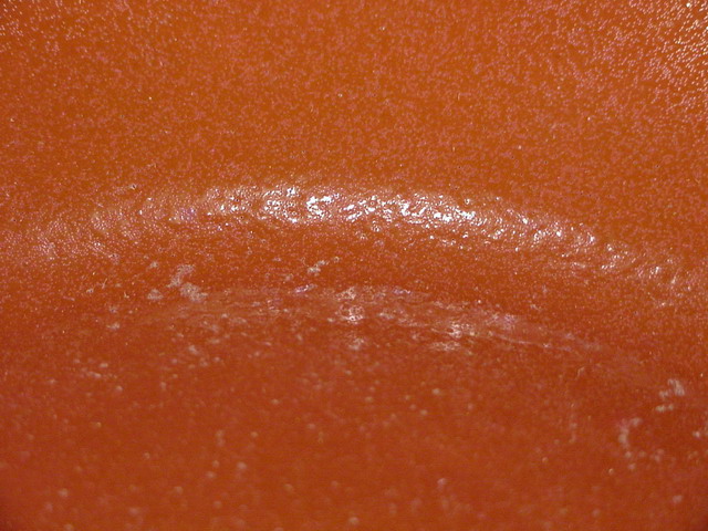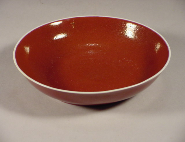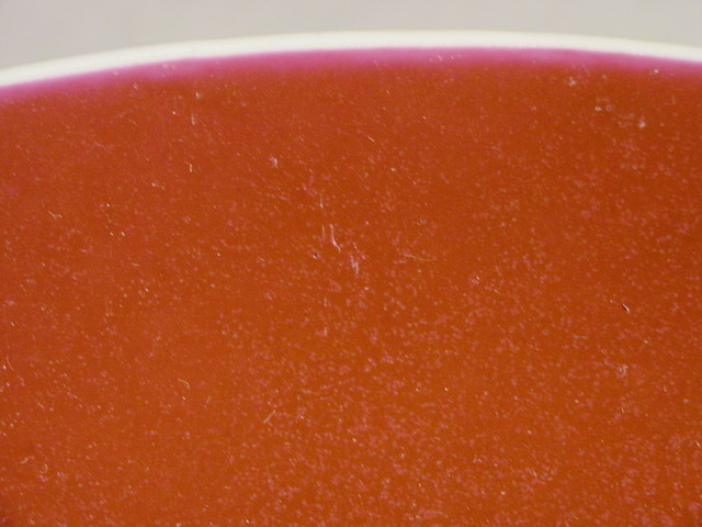 in a rich liver red, orange peel (ju-pi) textured enamel with the rim and