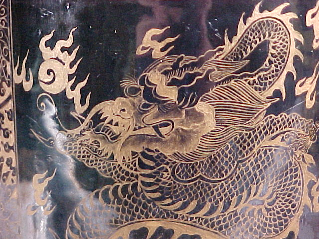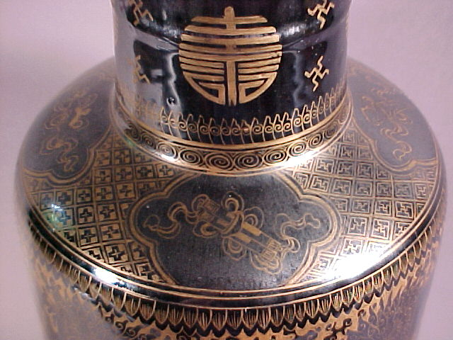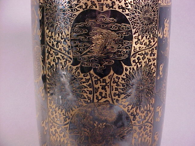 Enlargements of 康熙 Kangxi Gilt Decorated Mirror Black Rouleau Vase (Bangchuiping)