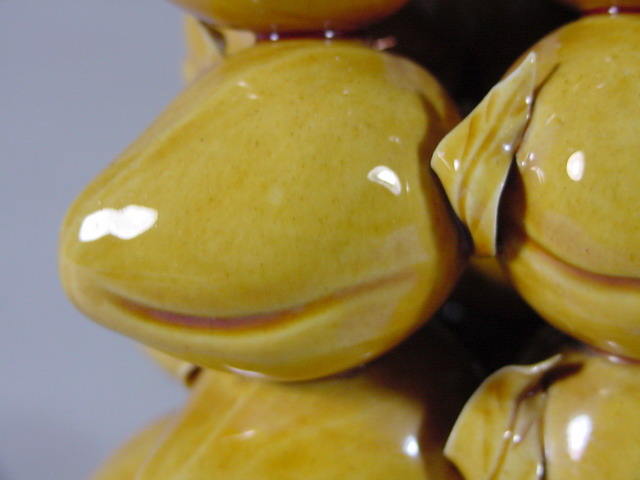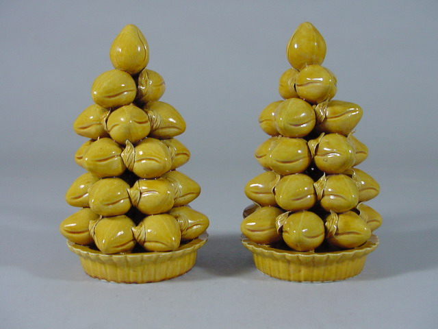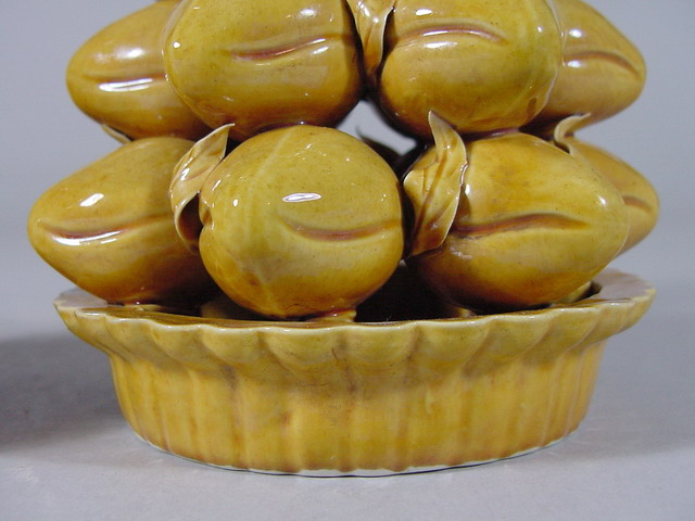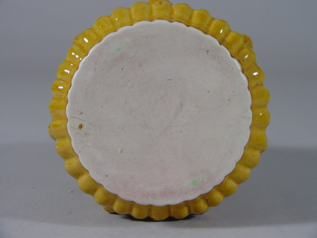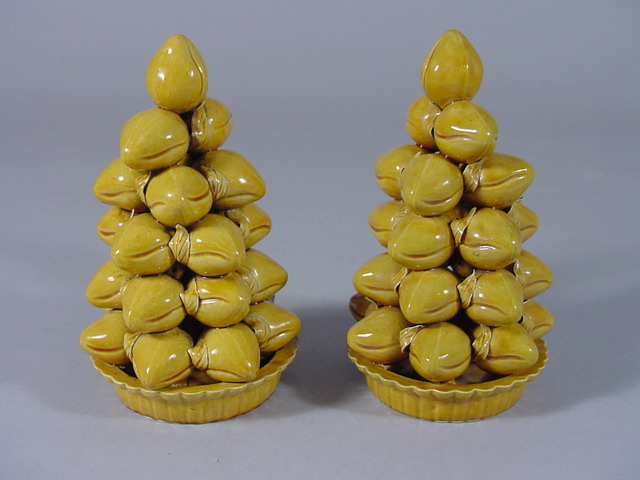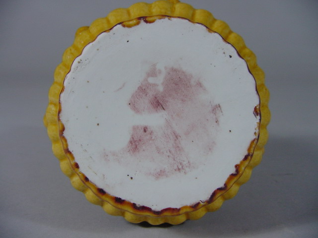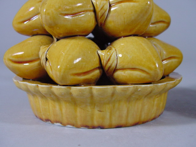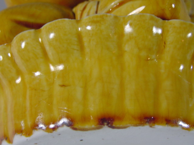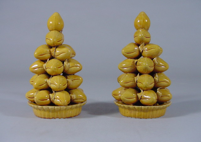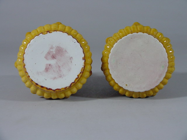 An extremely rare pair of fluted trays containing layered stacks of peaches, the symbol for immortality and according to Chinese legends the most important ingredient employed by the Moon Hare pounding the drugs for the elixir of long life. These fruit trays were to be displayed at the personal altars within the palace of the Emperor, as a permanent offering to heaven. Covering the biscuit is a fine transparent Imperial yellow enamel glaze and the bottoms are unglazed exposing a fine compact paste.