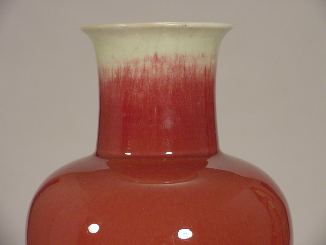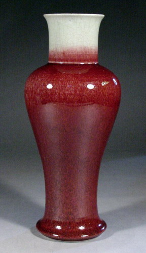 shoulder is covered with a sumptuous rich raspberry transparent langyao glaze