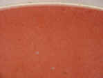 a tint of pink. The wedge shaped footrim is burnt red in the firing. |