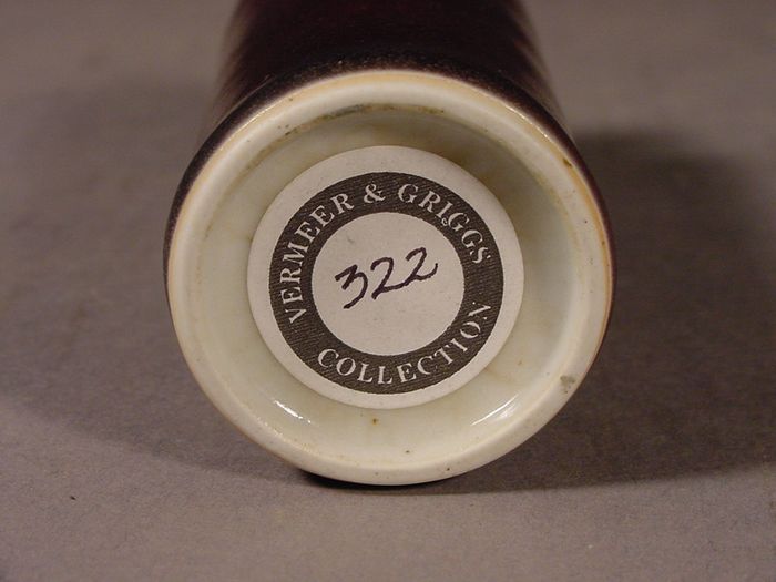 interior and base are glazed white and there is evidence of burnt red biscuit