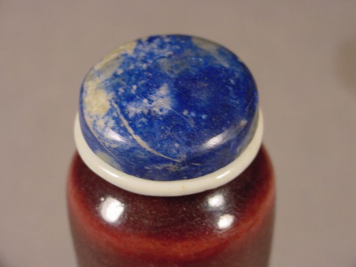 used as a medicine or master snuff bottle and has a lapis lazuli top. |