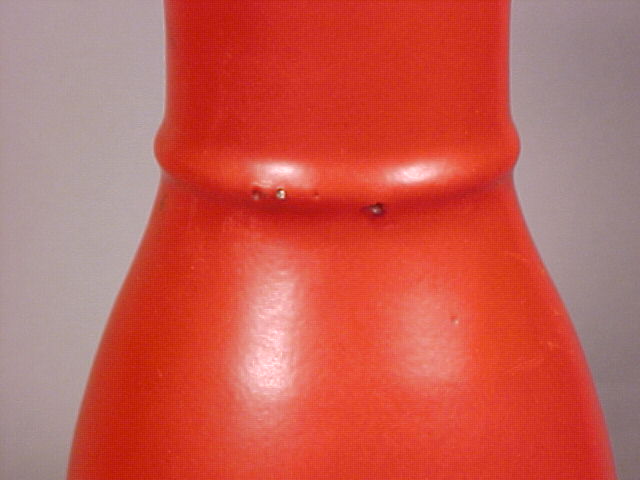 Detail showing burst glaze bubbles in enamel on bowstring rib