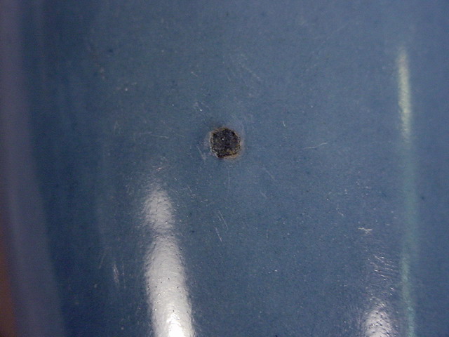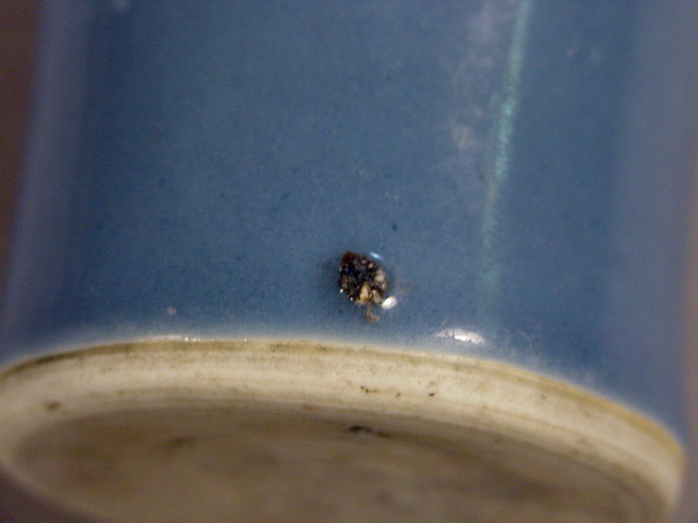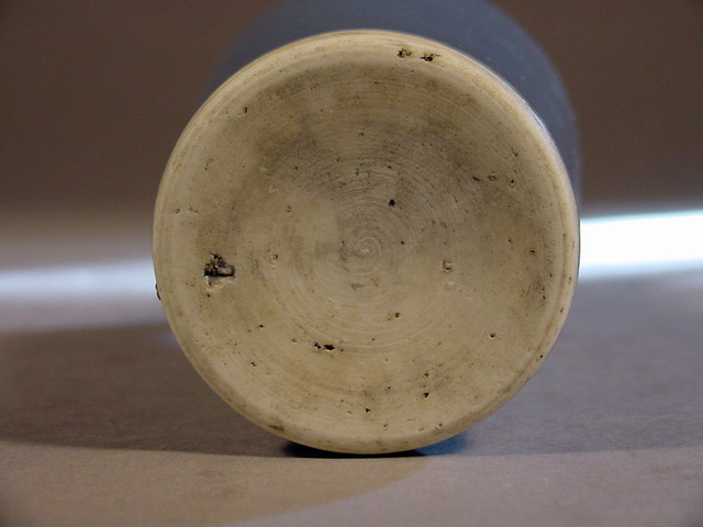 lavender cobalt blue glaze extending to the mouth-rim. The interior is glazed white. The slightly convex base left unglazed exposing the compact biscuit.