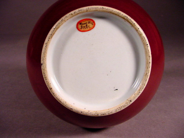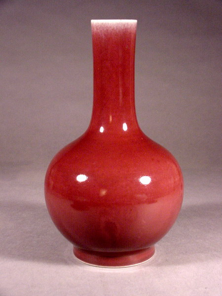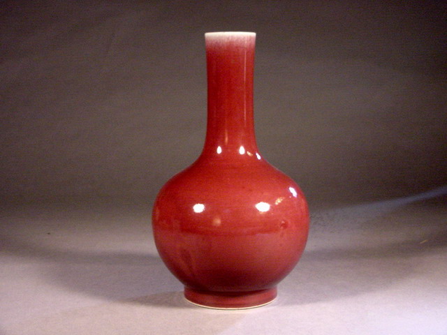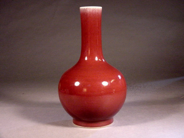 康熙 Kangxi copper-red glazed bottle vase of globular form, the well potted