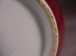 rich slightly transparent raspberry glaze thinning from the neck leaving