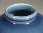thick powder blue glaze stopping well above the foot showing slight burning