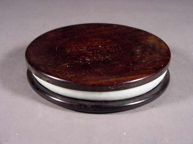 fired on supports. A teak wooden stand and cover made to fit the piece is