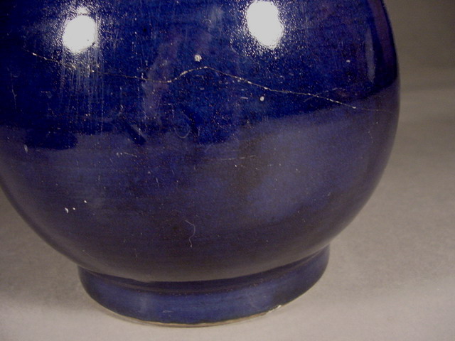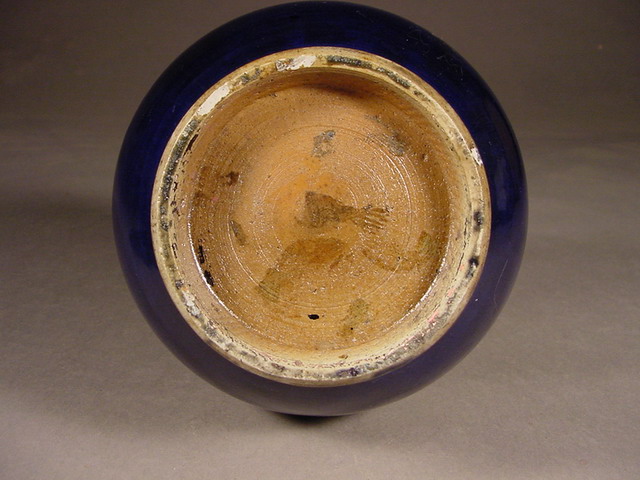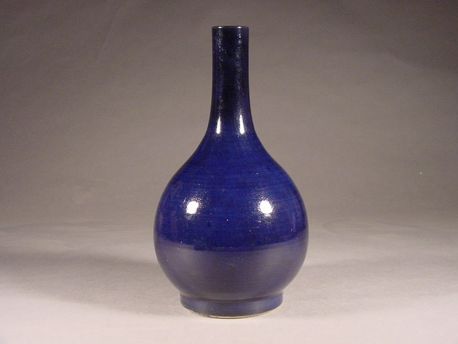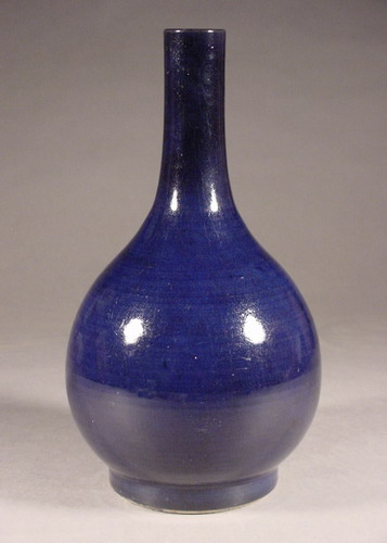 body tapering to a narrow cylindrical neck rests upon a high wide