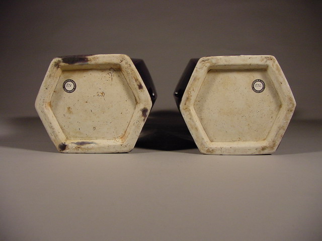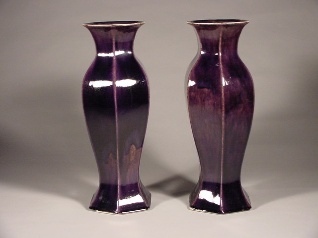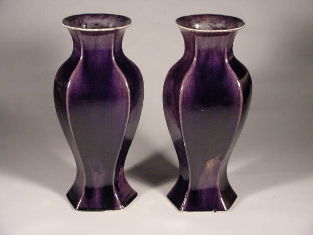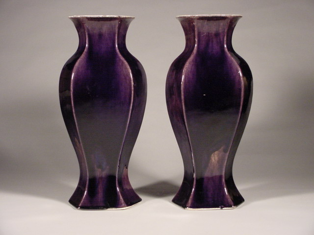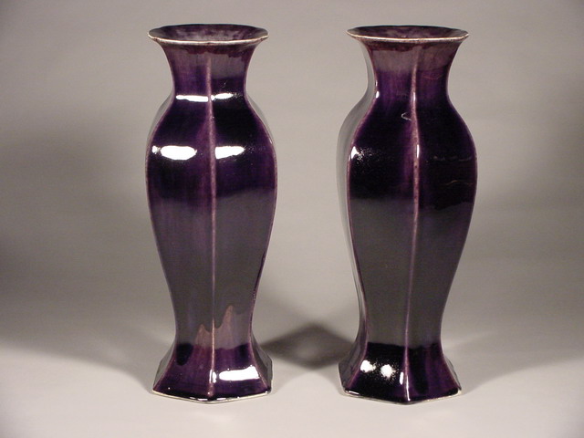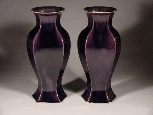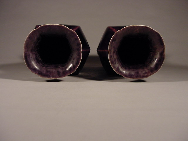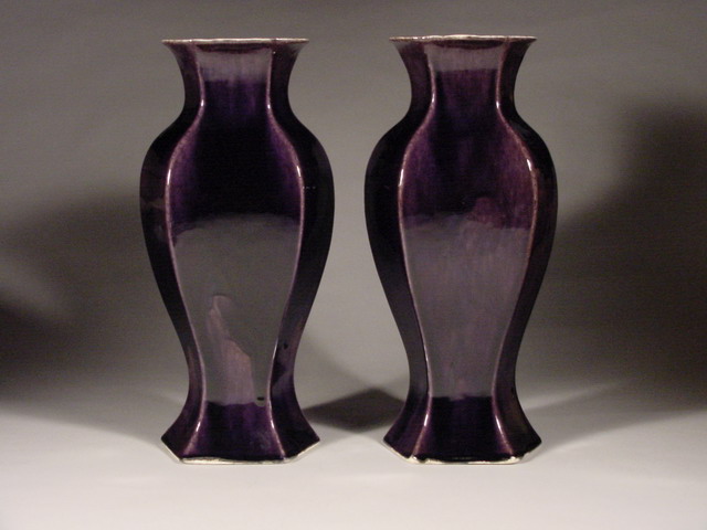 Pair of 康熙 Kangxi Aubergine Hexagonal Baluster Vases