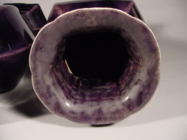 Enlargements of Pair of 康熙 Kangxi Aubergine Hexagonal Baluster Vases
