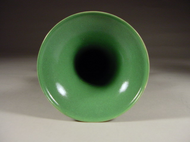 camellia-leaf green glaze with black stained craquelure. The base and interior