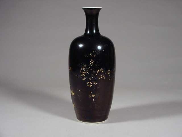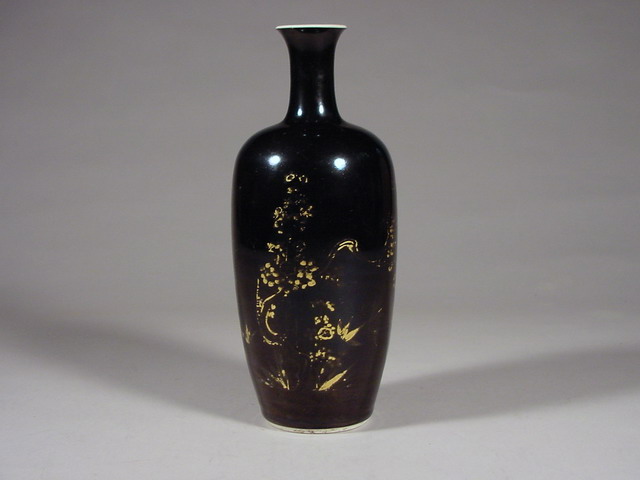 ovoid shape with tall flaring neck decorated with gilded floral sprays now