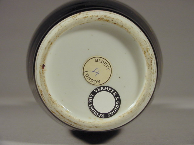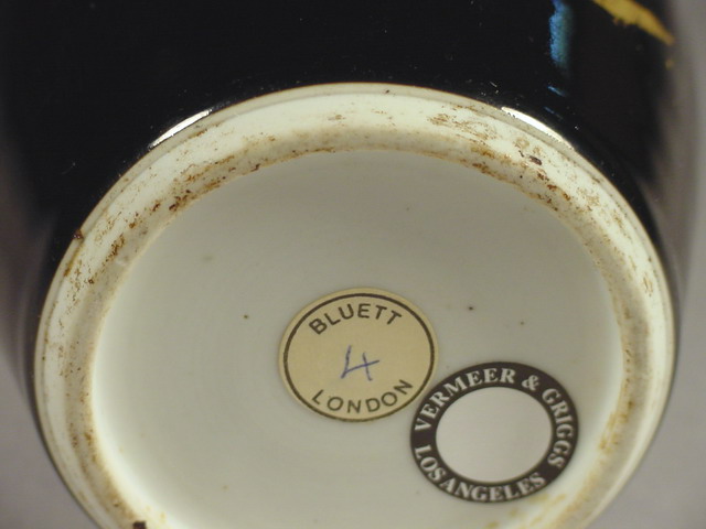 fairly worn. The base is glazed white. Gilt decoration on mirror black wares of