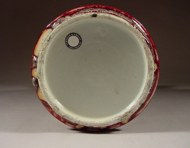 rim. The base is covered with a pale mushroom toned glaze. |
