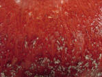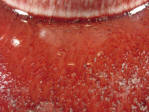 red, pooling around the neck and shoulder to a deep red collecting at the foot