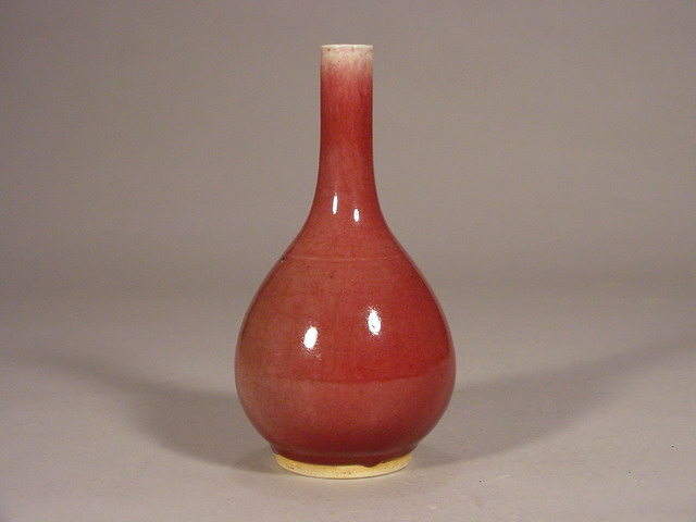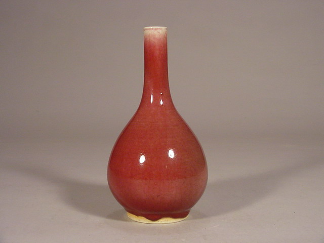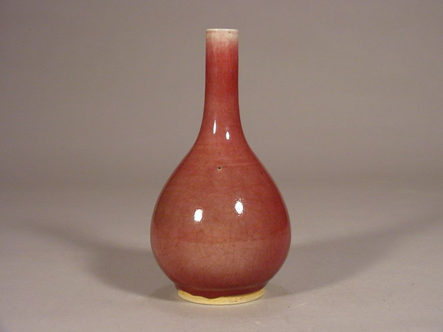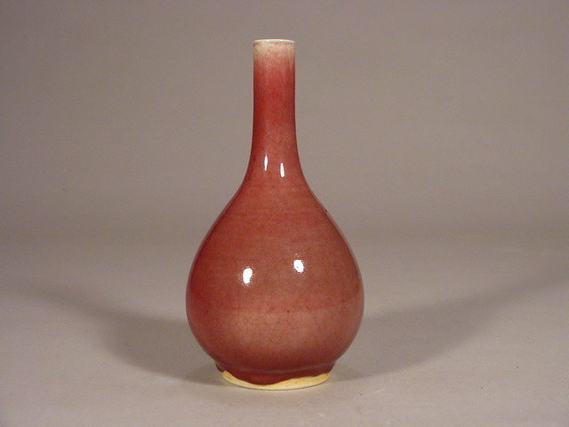 the rare ashes of roses glaze thins from the mouth rim darkening at