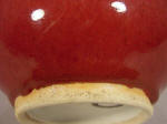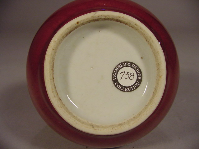 the base to a deeper burgundy tone where the glaze stops well above the foot rim,