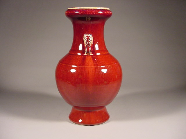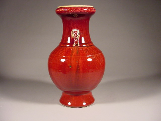 body raised upon a high splayed foot. The flared neck surmounted by a