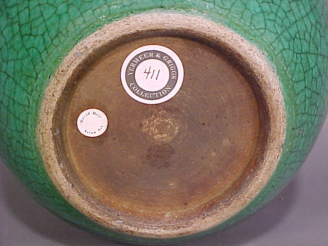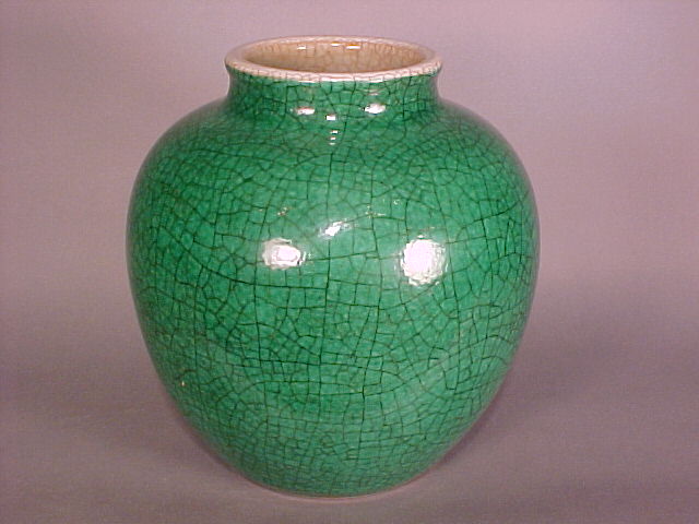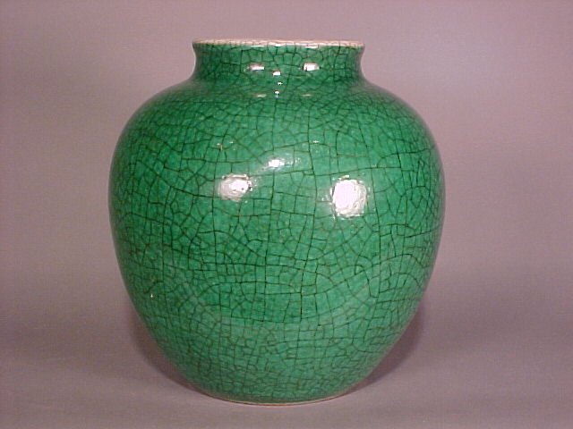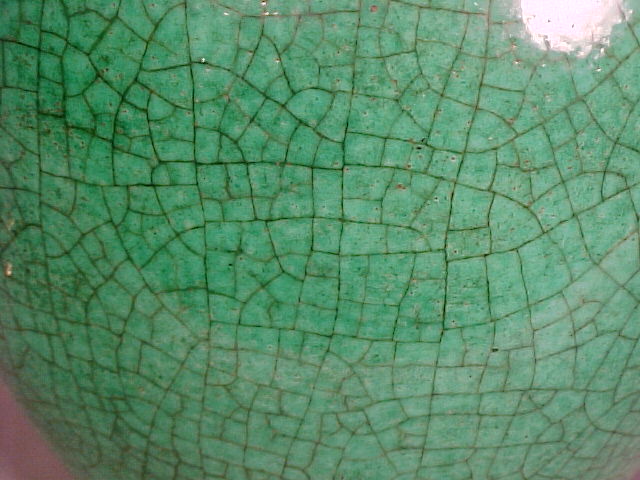 short flared neck covered in an orange peeled apple green transparent glaze over