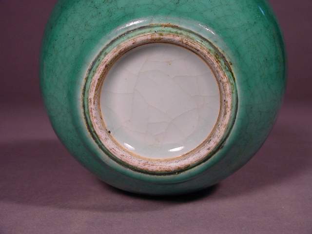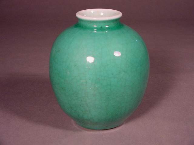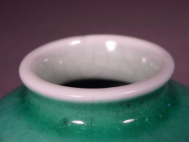 and rolled rim covered in a brilliant apple green transparent glaze over a
