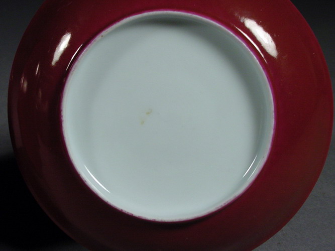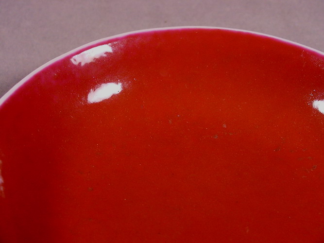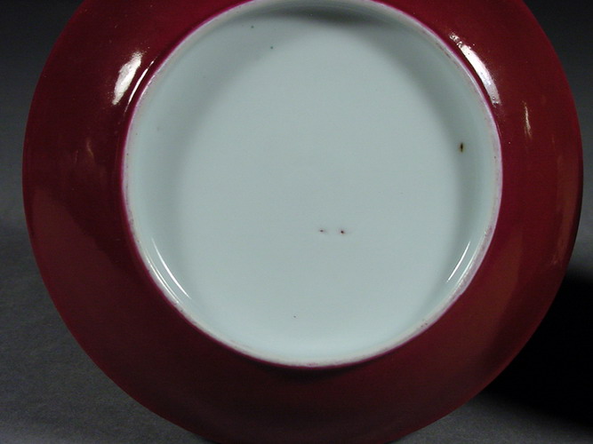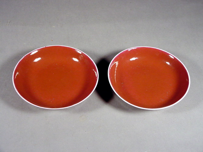 Enlargements of 乾隆 Qianlong Pair of Coral Red Enameled Saucers